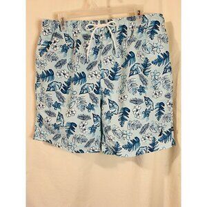 Men's Nautica swim Shorts trunks Tropical leaf print Shades Blue Size XL