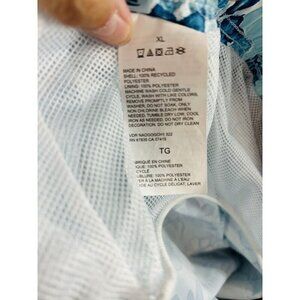Bought these new for my husband, tried them on and didn’t like them. Never worn, laundered. Nautical, size XL, drawstring waist, mesh lining, two side pockets one inside waist envelope pocket. Waist 17.5” (but is elastic and drawstring), inseam 7”, front rise 12”, back rise 15.75”. Excellent clean new condition.