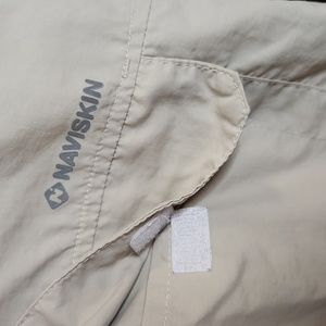 Men's Naviskin lightweight breathable vented utility, outdoor/fishing shirt. 2 breast "hook and loop" closure pockets measuring approx. 5" x 5", each pocket has a smaller pocket for something like a pen, loops on the arm sleeves for other items or equipment, back has 2 breathable mesh flaps to help keep you cool. Good used condition, see pics for wear any stains. Size XXL. Measures approximately 27" pit to pit, 30" length, 24" sleeve (shoulder to wrist),