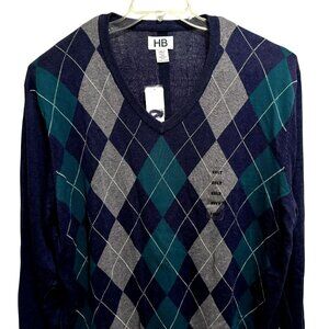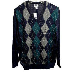 Mens Navy Argyle Sweater 2XLT Long Sleeve V-Neck Pullover Harbor Bay Preppy NWT