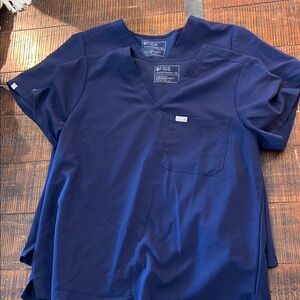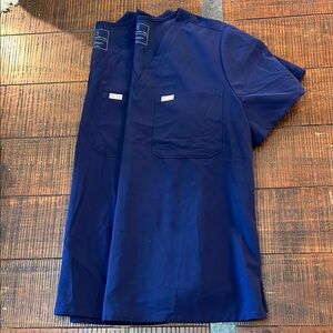 Stylish and comfortable men's navy blue scrub top, perfect for any work .