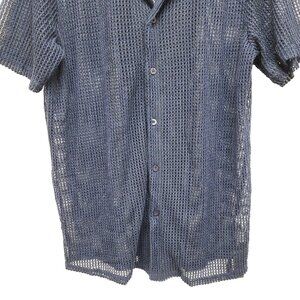 Mens Navy Blue Mesh Button-Up Shirt By URRU Size L Short Sleeve Lightweight