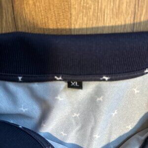 Men’s Navy Blue Polo Shirt Small White Print Short Sleeve Golf Casual Top Sz XL