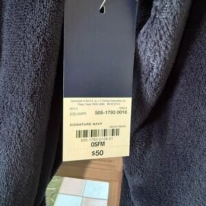 Luxurious and comfortable navy blue robe perfect for lounging. Soft fabric ensures a cozy fit. One size, NWT