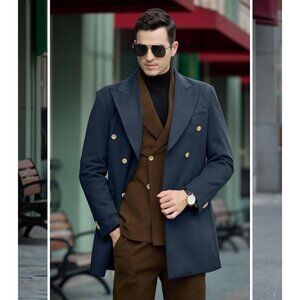 Mens Navy Blue for Long Jackets Warm Peacoat Men's Double Overcoat Trench Coats