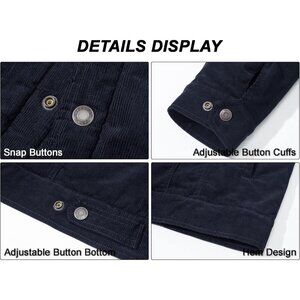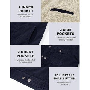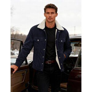 Mens Navy Corduroy Jacket Sherpa Lined Warm Winter Trucker Cargo Coat