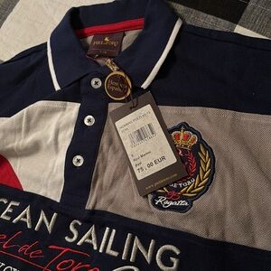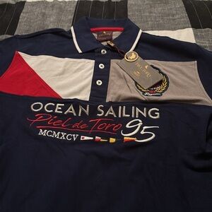 Elevate your style with the Men's Navy Polo Shirt. Featuring a bold navy color with red and white accents, this shirt is perfect for casual outings. Experience comfort and style with .