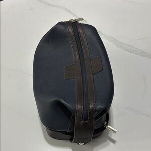 Stylish men's leather bag in navy and brown. Perfect for everyday use.