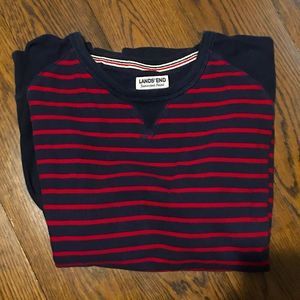 LANDS END Ragland Sweatshirt Navy Blue Solid Arms, Red/Navy Striped Chest