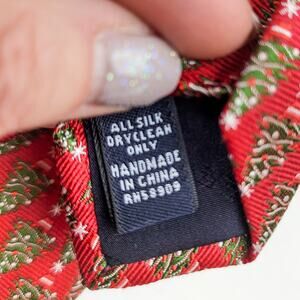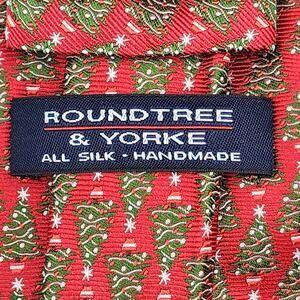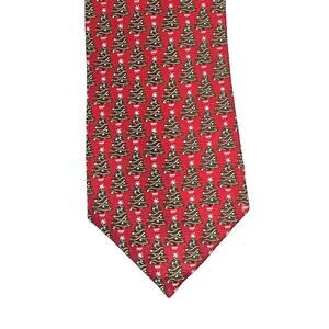 Men’s Neck Tie Silk in Red Roundtree and Yorke Handmade Christmas Tree Design