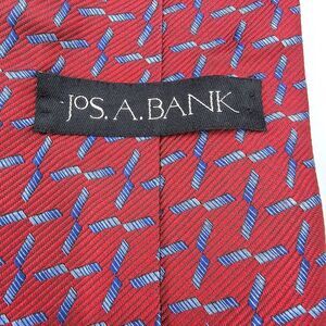 Mens Necktie Jos. A. Banks Silk, Suit, Formal, Size 59.5 x 4 Inches Red vintage. The geometric pattern in shades of blue over a bright red background exudes sophistication and style. Made of 100% silk fabric, this classic length tie measures 59.5 x 4 inches and features embroidered accents of the Jos. A. Bank logo.