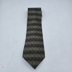 This vintage men's necktie features a green, blue, and tan geometric pattern with a plaid and check design. Made of 100% silk, this classic 58" x 4" tie is perfect for adding a retro touch to a suit or formal outfit. The tie is adjustable and has accents like eyelets and a logo, making it a unique and stylish accessory for any man's wardrobe. Made in China, this tie is sure to make a statement with its abstract and eye-catching design.