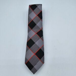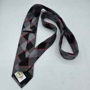 Mens Necktie Old Navy Black Grey Red Skinny Striped 49x2.5 Inch Slim Vintage. The black, grey, and red striped pattern adds a pop of color to any outfit. The tie is made of rayon fabric and features a skinny width of less than 3 1/2 inches, making it a modern and slim choice.