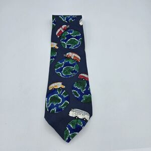 Mens Necktie Save the Children School Bus Tie, 100% Silk, Size 55.5 By 4 In Blue