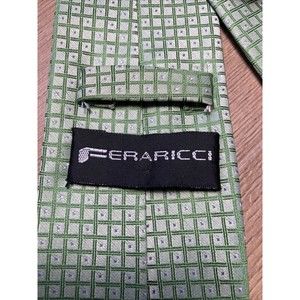 Feraricci Mens Necktie Tie Neckwear Green Square Patterned NWOT