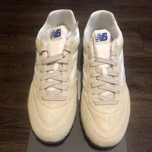New Balance RC30 Mens 11.5 Macadamia Cream Blue Accents - Excellent Condition! Minimal wear on these premium hairy suede sneakers. For the minimalist who craves simplistic style - a chic take on 1970's heritage designs with bold updates ready for the here and now. The low-profile upper and twisted outsole create a versatile look that can take you anywhere. Similar vibe and style to Adidas Samba and Spezial Handball. No box included. Fast shipping!