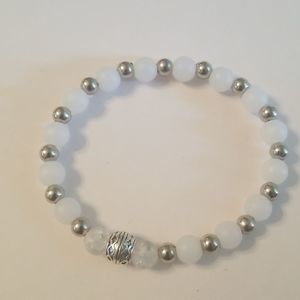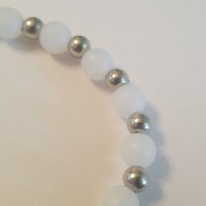 Mens New Custom Made 6mm White & Silver Beaded 8" Expansion Bracelet