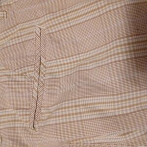 Stylish men's tan plaid shorts perfect for casual outings. Comfortable and versatile for everyday wear.