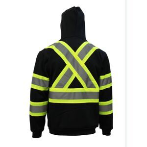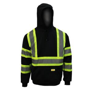 New York Hi-Viz Workwear Men's ANSI Class 1 High Visibility Class 3 Sweatshirt, Hooded Pullover, Knit Lining Black Size 4XL