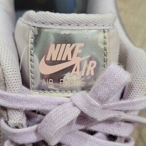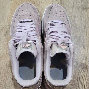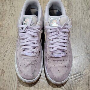 These awesome mauve colored suede AF1s are so cool! Please note: silver is fading on shoes...touched up with silver sharpie. Shoes were also just washed and will need to be worn in to soften. Great condition and awesome style!