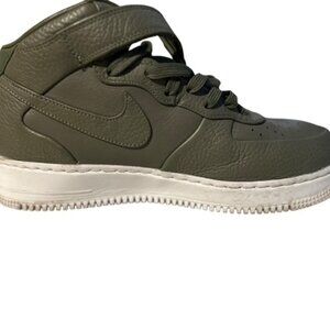 Men's Nike Air Jordan 23 AF-1 sneakers in size 9.5 feature the best of both worlds with a lace-up closure and adjustable strap for a comfortable fit. This style includes a mid-top shoe shaft with faux leather upper material and a fabric lining. The green colorway and solid pattern make it suitable for various occasions including activewear, casual wear, and workwear. With its athletic design and Nike Air Jordan product line, this shoe combines style and performance for a versatile option for any season. Excellent Condition.
