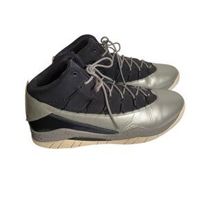 The Mens Nike Air Jordan Flight Shoes in Navy and Gray, size 12, are stylish athletic sneakers designed for sports enthusiasts. Featuring the iconic Nike branding and the signature Air Jordan Flight model, these shoes offer both comfort and style on and off the court. The navy and gray color scheme adds a modern touch to the classic sneaker design, making them a versatile choice for any athletic or casual outfit. Perfect for men looking for high-quality footwear that combines performance and fashion. S448
