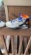 Vibrant Nike sneakers for Men. Cream base with blue and orange accents. Comfortable and stylish for everyday wear.