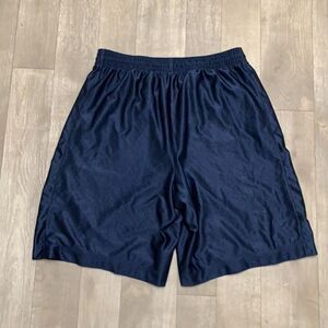 24” from top to bottom 10” inseam 36” waist. Navy blue with white check and pockets. In good condition. Only worn couple times .Size X-Large.