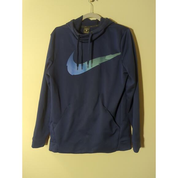 Mens Nike Dri Fit Navy Blue Hooded Sweatshirt Size Medium Multi Color Swoosh