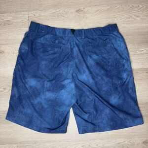 The Men's Nike Dri-FIT Hybrid Wash Golf Shorts in size Large and Dutch Blue/Midnight Navy color are designed for athletic performance and comfort on the golf course. Made from a blend of 90% polyester and 10% spandex, these shorts offer a stretchy and breathable fit that allows for maximum movement and flexibility during your game. The Nike brand ensures quality and style, while the athletic fit and specific golf performance/features make them ideal for any golfer looking to elevate their game.