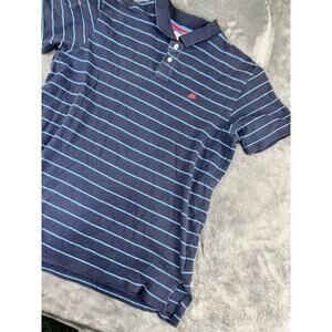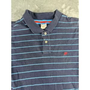 Men's Nike Dri-FIT Navy Blue Light Blue Striped Golf Polo Shirt Size 2XL EXC