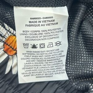 Black athletic swim trunks with white daisy pattern. Comfortable and stylish for workouts and/or swimming.