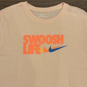 Men’s Nike Graphic T-Shirt Short Sleeve Peach Orange Size Large Swoosh Life