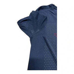 Men’s blue Nike Tee shirt with white dots and red stars. It is part of the DRI-FIT collection with an athletic cut.