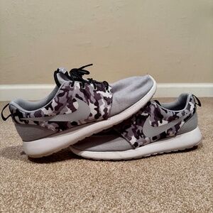 Brand/Style: Nike Roshe Running Shoes Color: Grey Camo, White (Limited Edition) Condition: Like-New. Excellent, never really worn at all Size: 13 Fast, next-day shipping. Please let me know if you have any questions