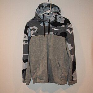 Nike Therma Camo Print Training Hoodie Mens Size Medium Gray color 22" across chest 21" shoulder to hem Great fall early winter, school, workout, casual
