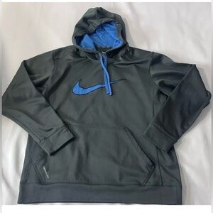 Men's Nike Therma Dri Fit Pullover Hoodie Gray Size Large Blue EUC