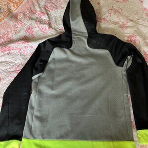 Gray with black sleeves and yellow cuffs - fleece lined.