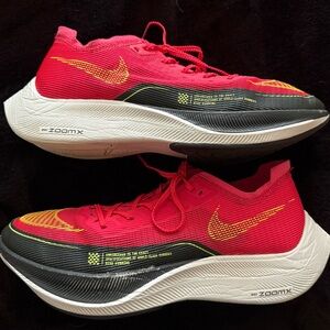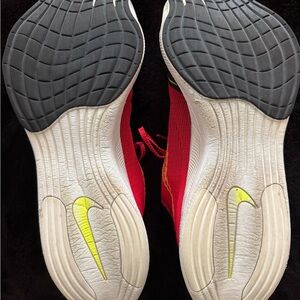Dynamic red Nike Vaporfly sneakers with sleek black and yellow details. Ideal for running and everyday style. Extremely comfortable, like walking on clouds. Very cushioned. Washed and in a smoke free house. Great condition. Size 11.5 Men’s