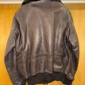 Vintage Nordstrom Northwear leather aviator or bomber jacket, similar in style to the A-2 bomber jackets worn by military personnel during World War II.