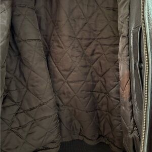 This NORTHWEAR Nordstrom leather jacket features a quilted lining and ribbed cuffs and waistband. It has two front flap pockets that button and is slightly distressed.