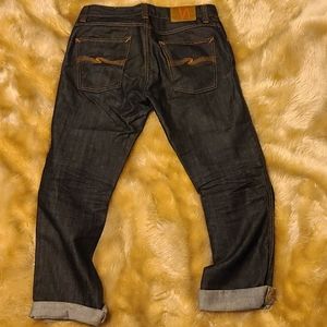 Men's Nudie 32x32 Slim Jim Raw Denim Blue Jeans