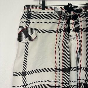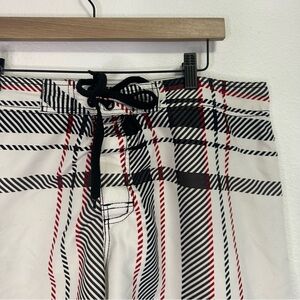Men’s OP Swim Trunks White w/ Black & Red Plaid – Size 38