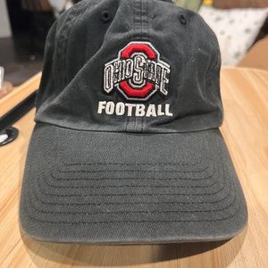 Ohio State University Buckeyes baseball hat. Large fit, NO ADJUSTABLE STRAP. Buckeyes word on the back. Some wear and tear, but still has love left in it.