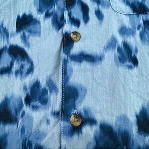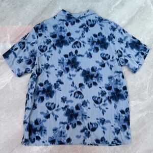 Good condition - Men’s Old Navy Camp Button Down Floral Short Sleeve Pocket Shirt. Has buttons down the front and one chest pocket. Colors: light and dark blue. Size: L.