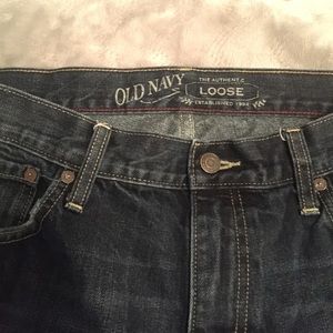 These are Men's Old Navy Loose Jeans. They are like new and show no signs of wear. The waist is 34 and the length is 34.