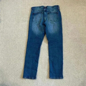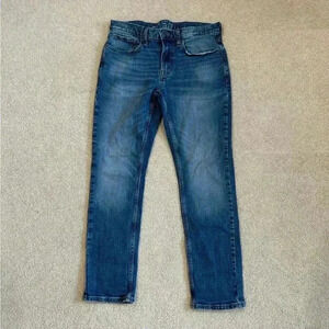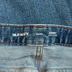 Men’s Old navy dark wash skinny jeans in size 32 x 30. In good used condition but does have minor distressing on the pockets.