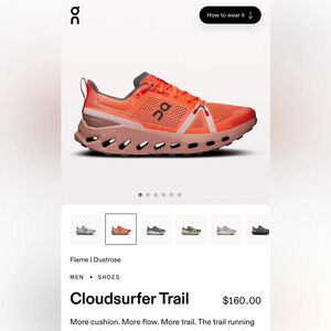 Men’s On Cloudsurfer Trail Shoes in Flame Dustrose Size 13