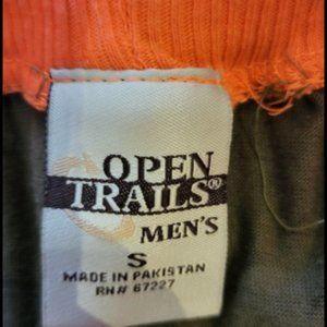 Open Trails mens camo lounge pants size small! In good condition! Orange waistband and drawstring and side hand pockets!