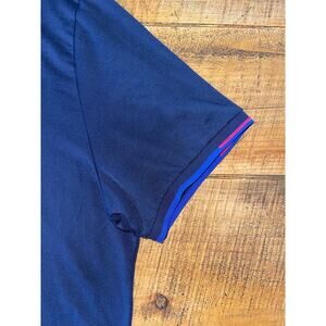 This polo is in excellent pre-loved condition! No rips or stains! This is an Original Penguins by Munsingwear shirt. It is navy blue, and it has a pink and white striped detail at the top. This shirt is super soft and lightweight, too! Measurements are in the photos. Mens size XXXL!
